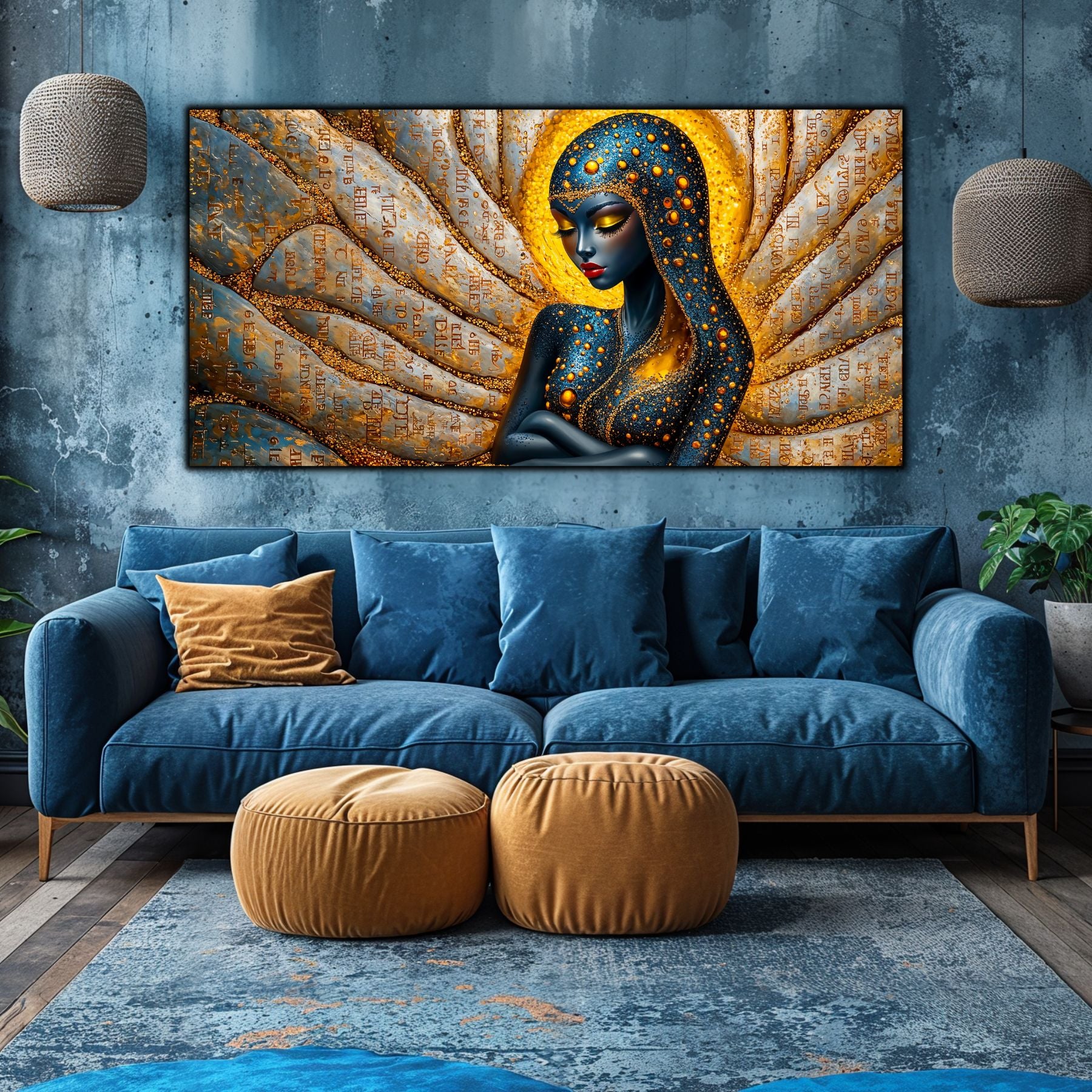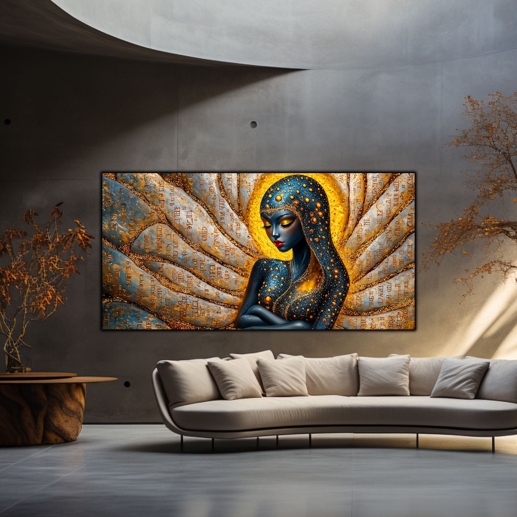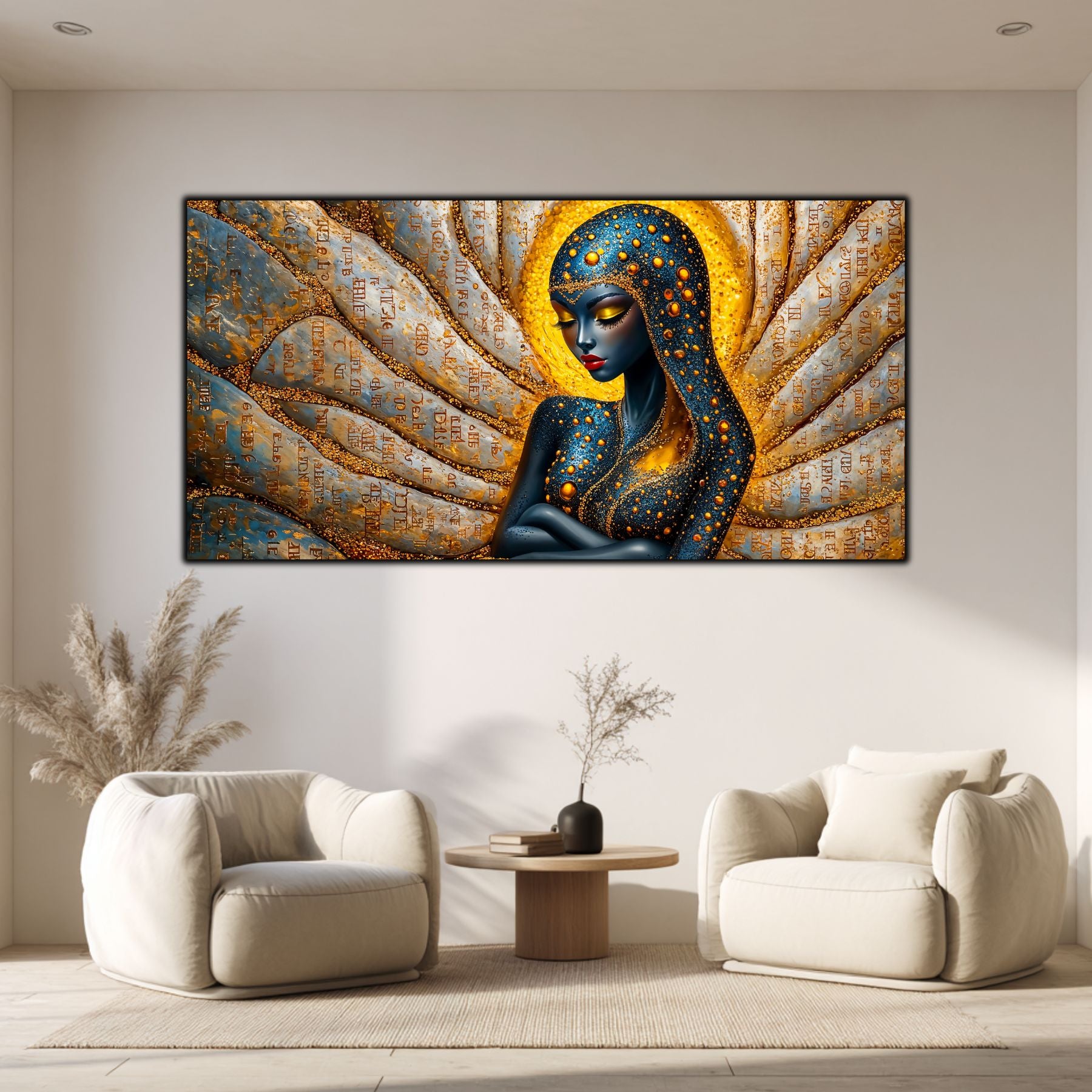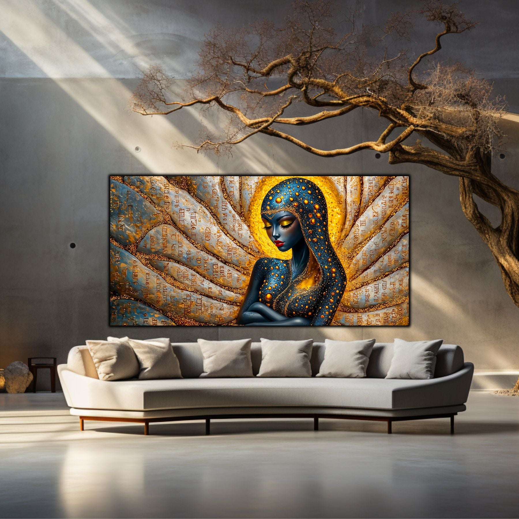 Imaginile prezentate sunt randari digitale realizate pentru a evidentia frumusetea tablourilor. Ele nu respecta proportiile reale in raport cu spatiul, fiind doar o interpretare artistica a modului in care acestea ar putea fi integrate intr-un decor. Va invit sa le „probati” mental pe peretii casei voastre si sa descoperiti cum isi gasesc locul in realitate.