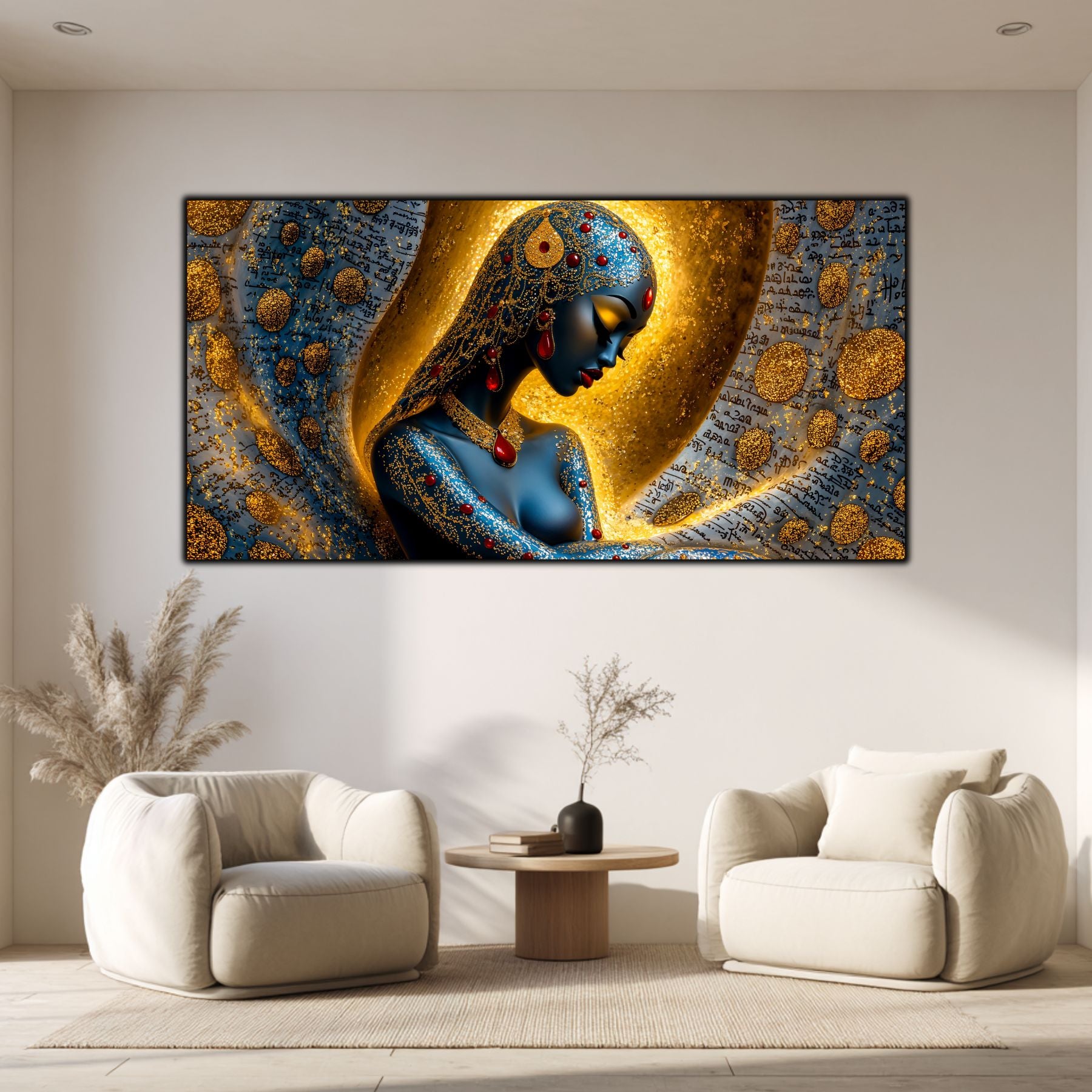 Imaginile prezentate sunt randari digitale realizate pentru a evidentia frumusetea tablourilor. Ele nu respecta proportiile reale in raport cu spatiul, fiind doar o interpretare artistica a modului in care acestea ar putea fi integrate intr-un decor. Va invit sa le „probati” mental pe peretii casei voastre si sa descoperiti cum isi gasesc locul in realitate.