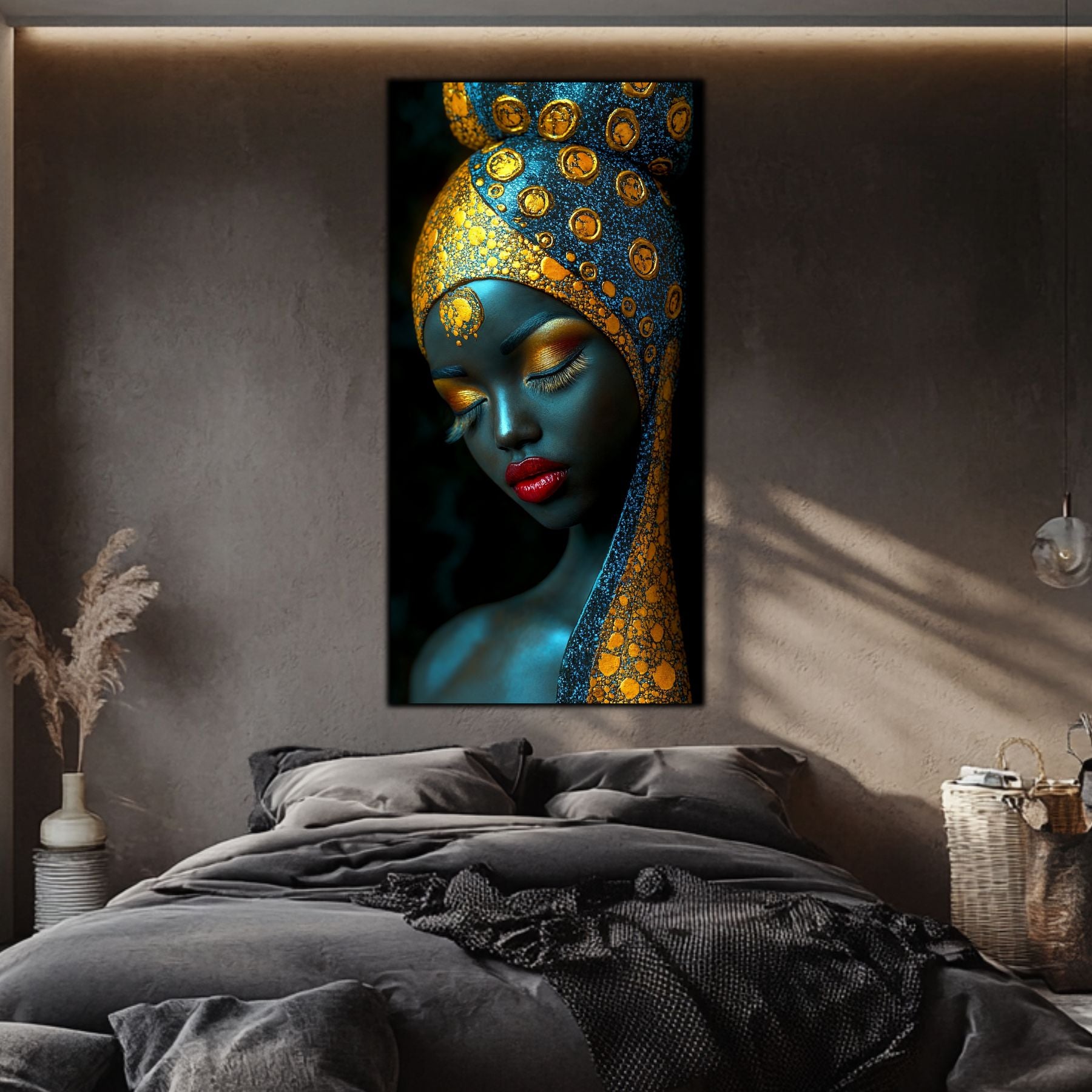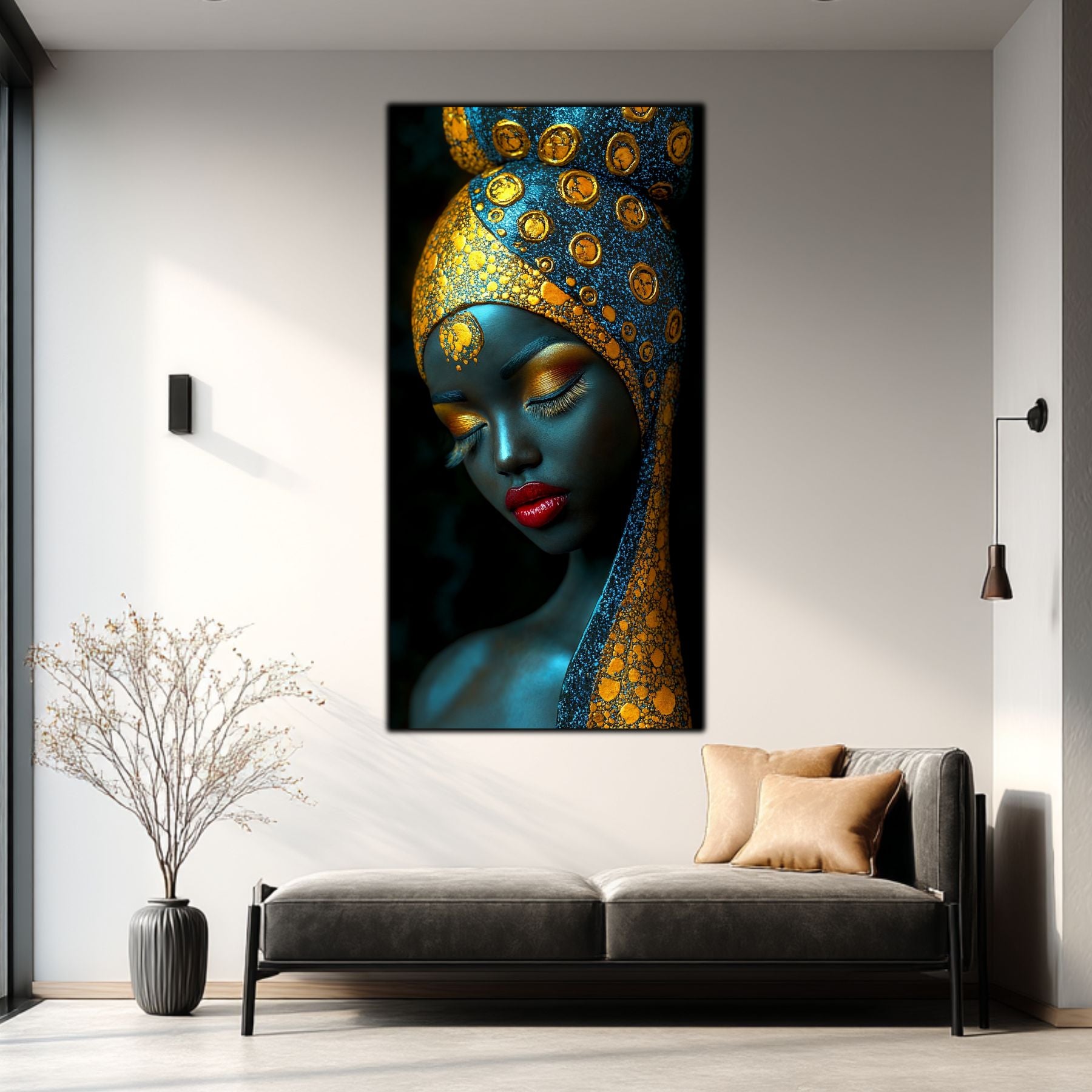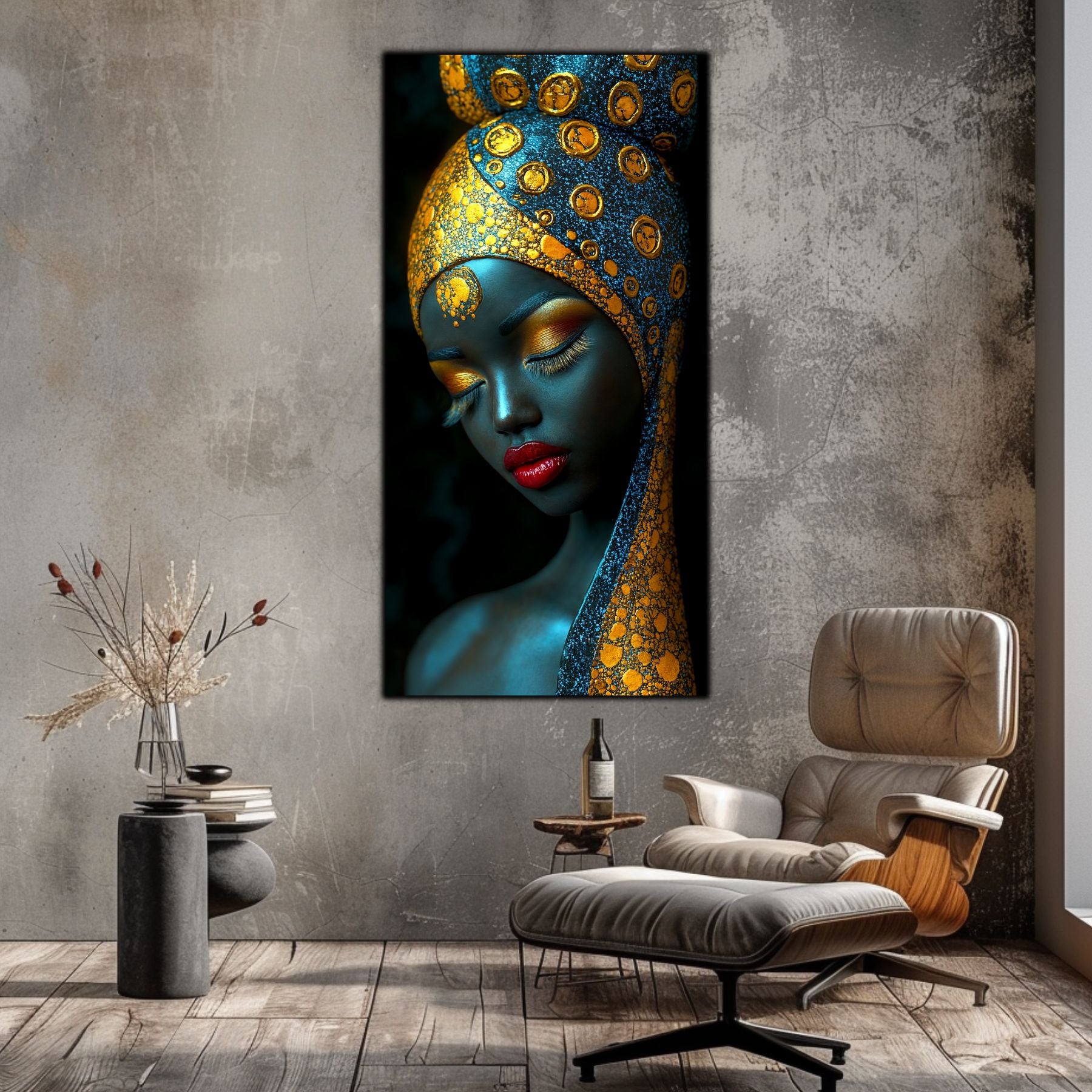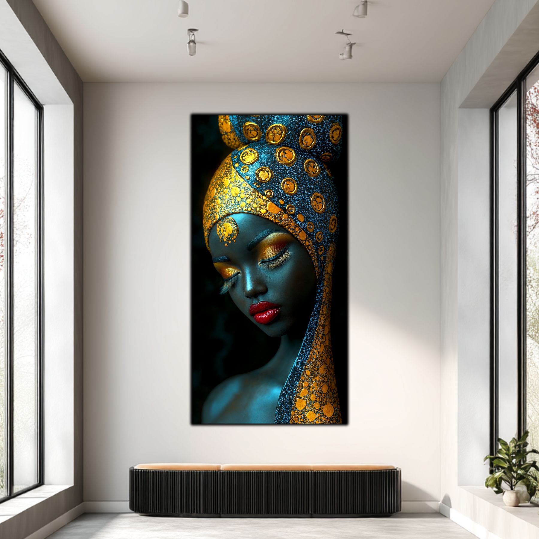 Tablou unicat din sticla securizata — printat UV la cea mai inalta calitate Colectie exclusiva ART-ZEN cu portrete africane, dimensiune remarcabila: 60x120 cm sau 80x120 cm