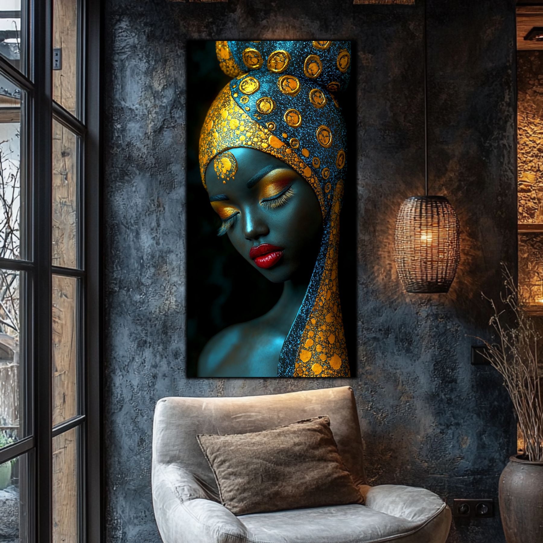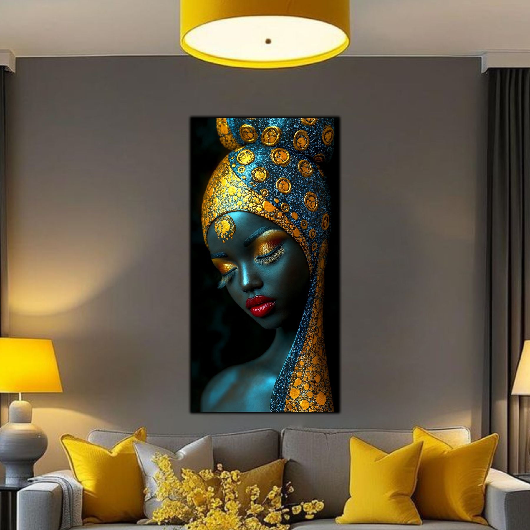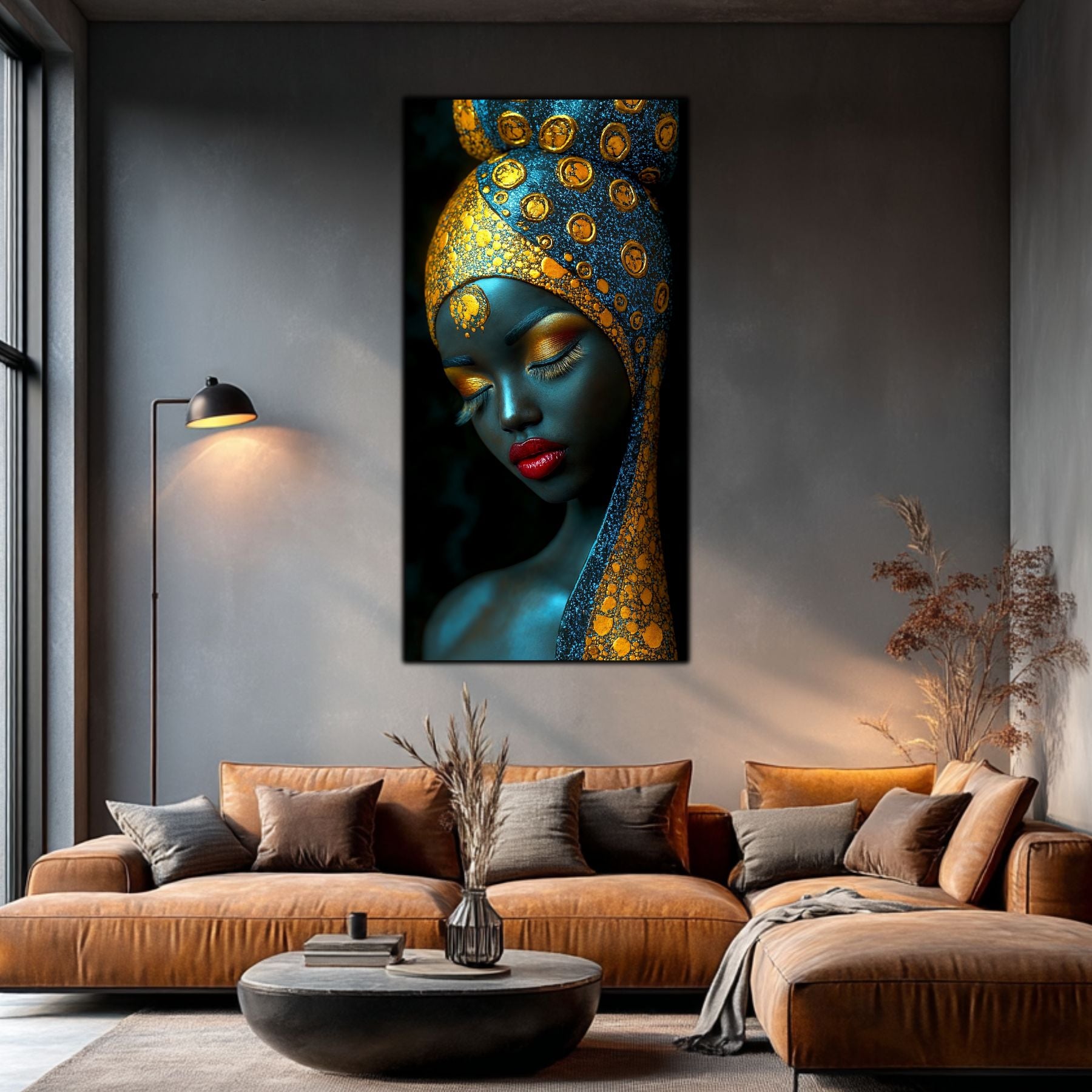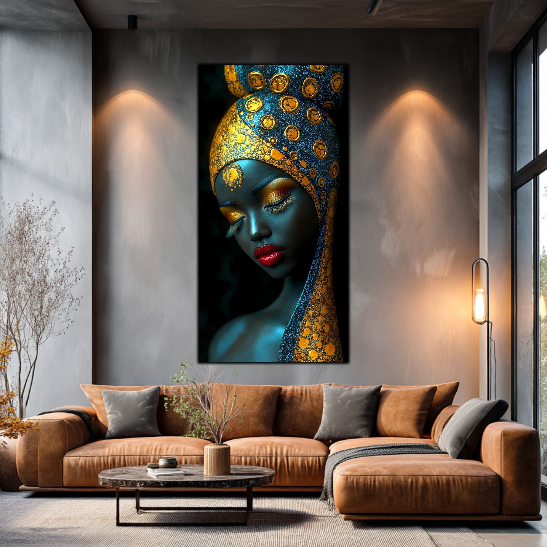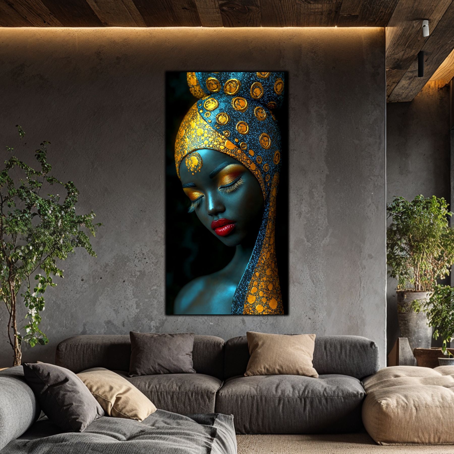 Tablou unicat din sticla securizata — printat UV la cea mai inalta calitate Colectie exclusiva ART-ZEN cu portrete africane, dimensiune remarcabila: 60x120 cm sau 80x120 cm