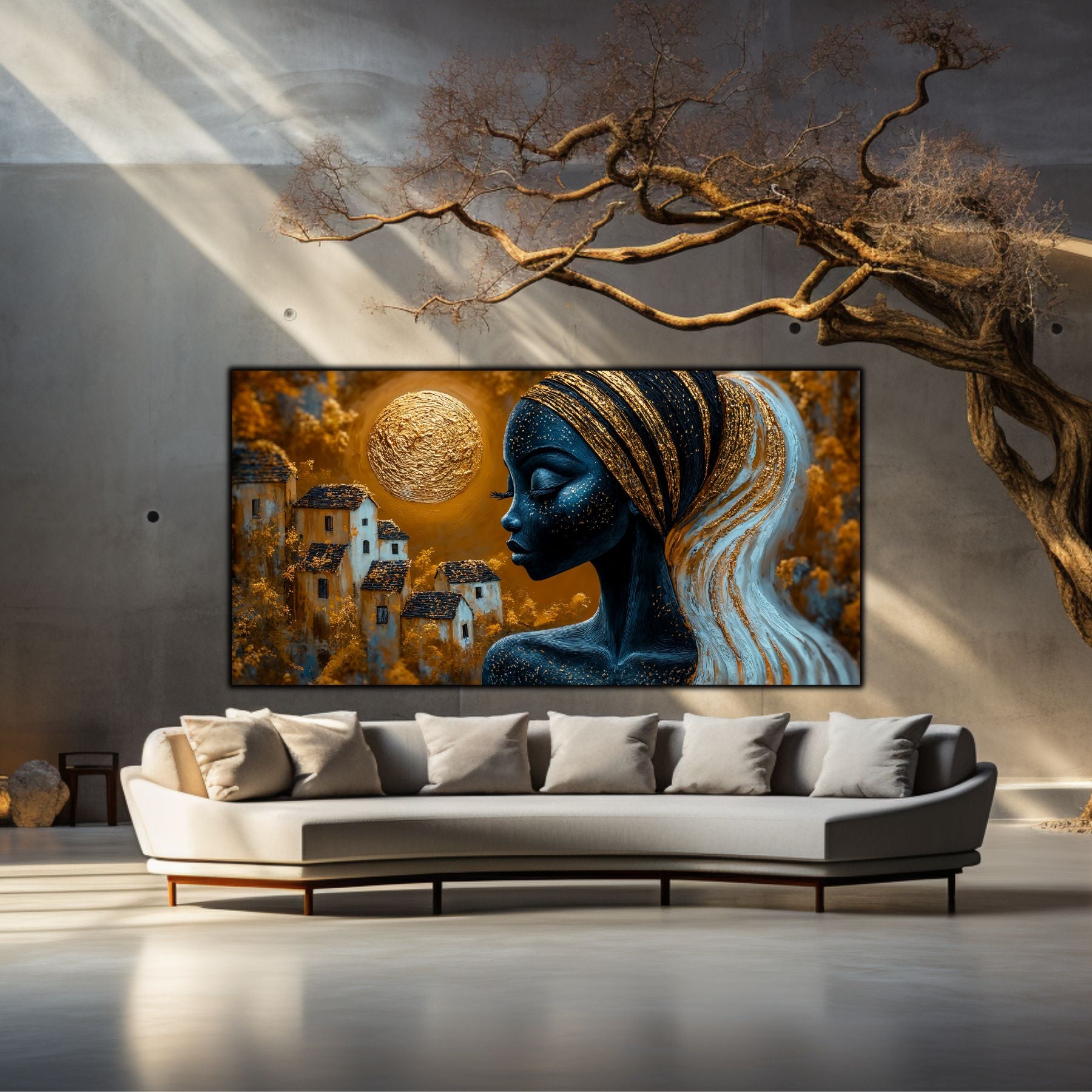 Imaginile prezentate sunt randari digitale realizate pentru a evidentia frumusetea tablourilor. Ele nu respecta proportiile reale in raport cu spatiul, fiind doar o interpretare artistica a modului in care acestea ar putea fi integrate intr-un decor. Va invit sa le „probati” mental pe peretii casei voastre si sa descoperiti cum isi gasesc locul in realitate.