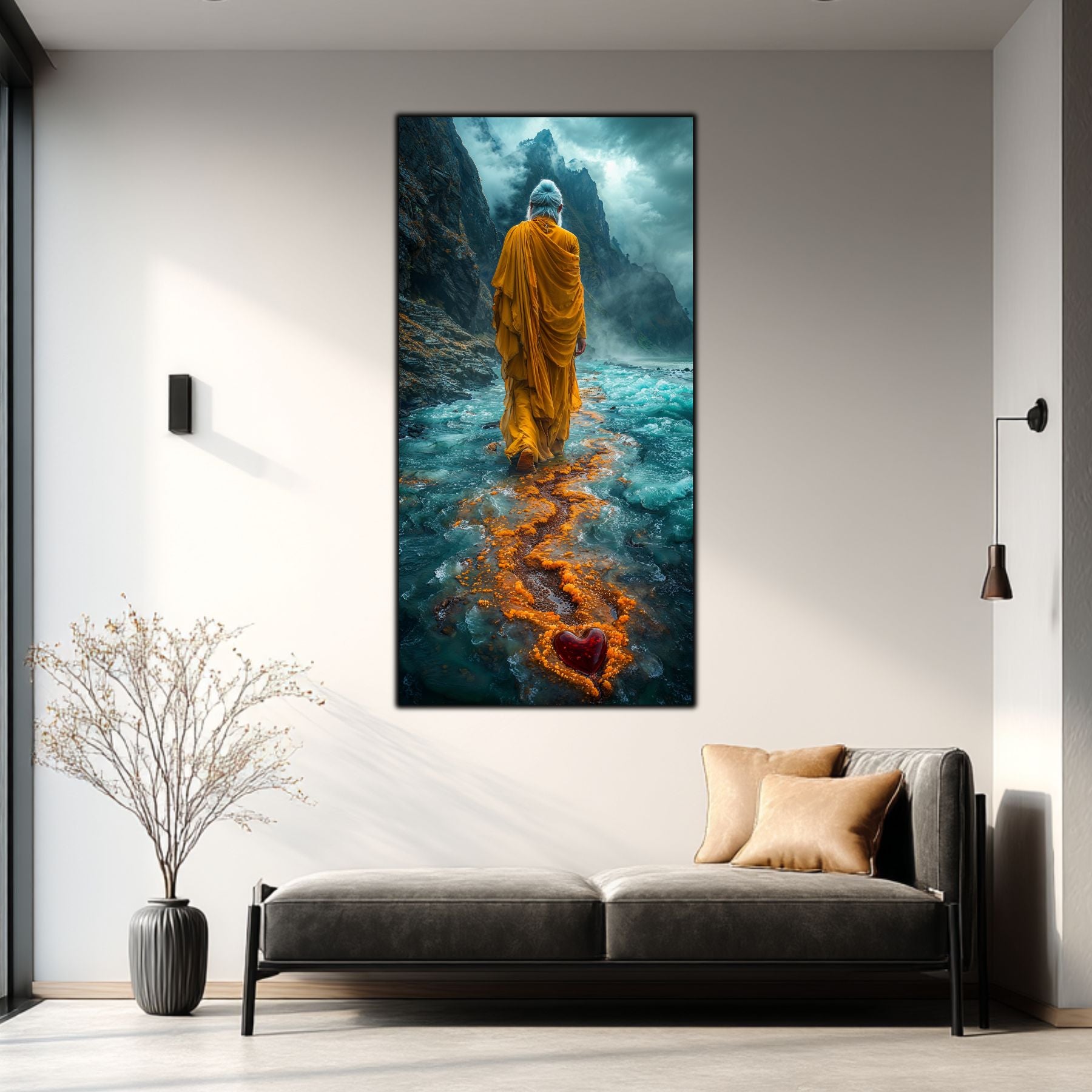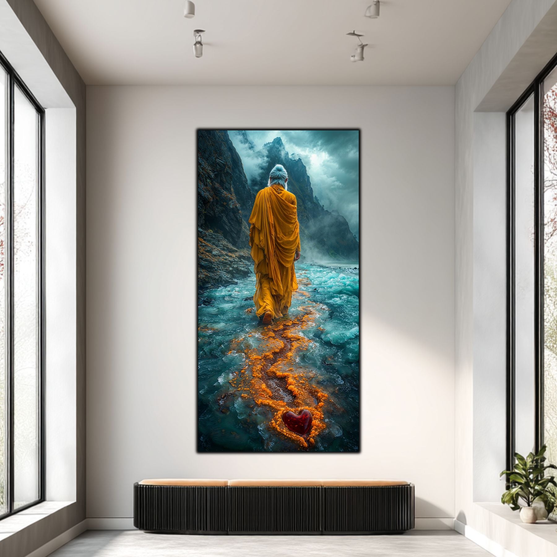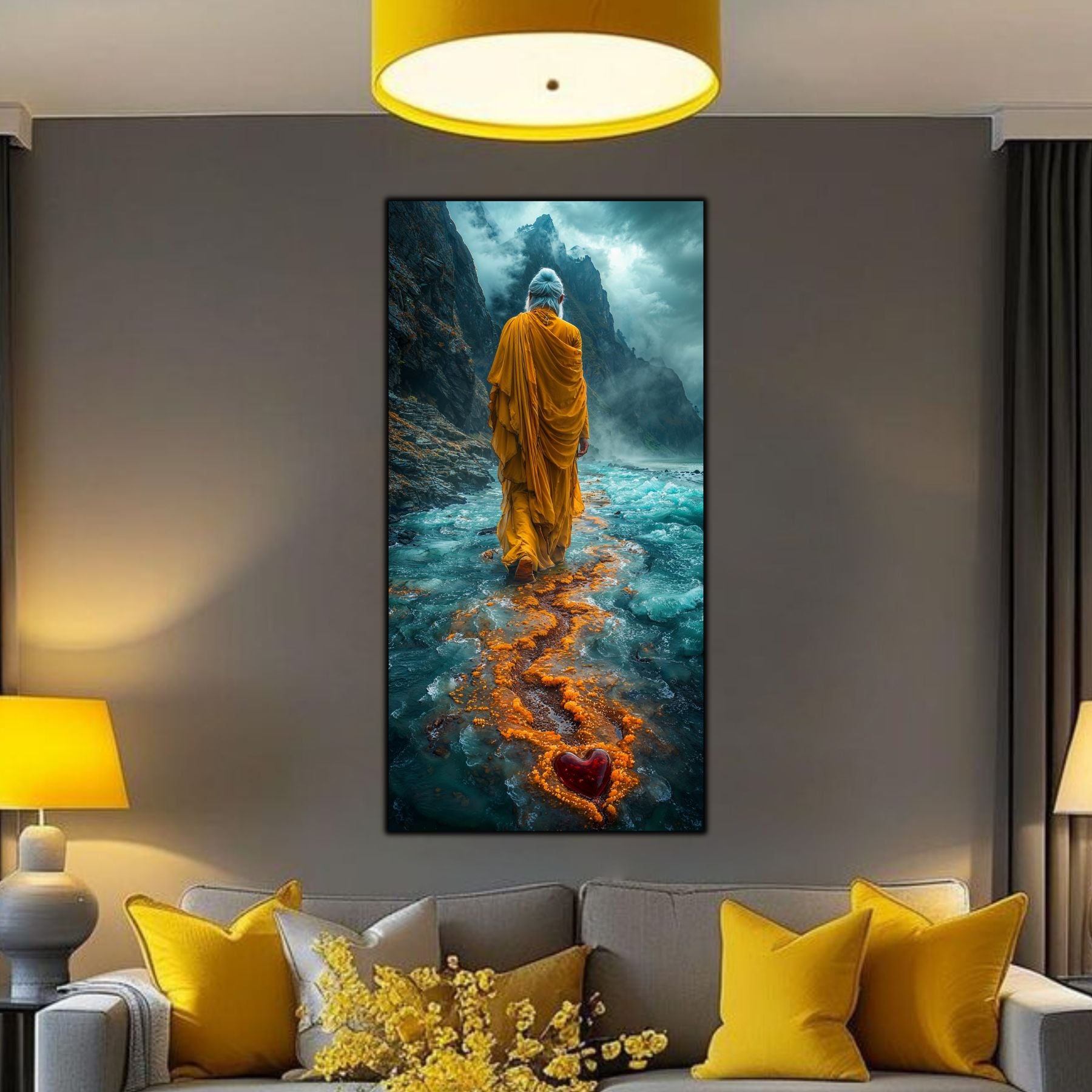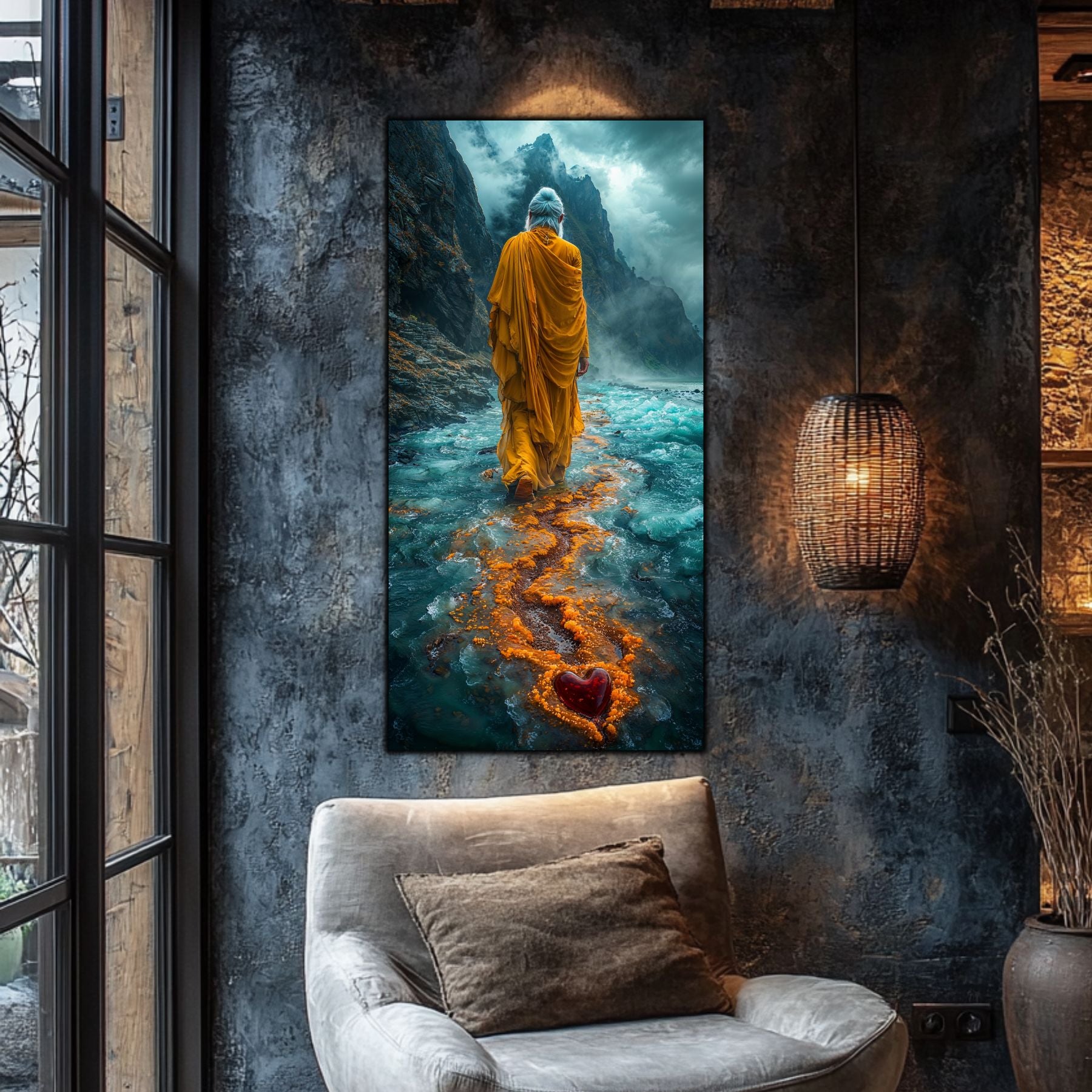 Imaginile prezentate sunt randari digitale realizate pentru a evidentia frumusetea tablourilor. Ele nu respecta proportiile reale in raport cu spatiul, fiind doar o interpretare artistica a modului in care acestea ar putea fi integrate intr-un decor. Va invit sa le „probati” mental pe peretii casei voastre si sa descoperiti cum isi gasesc locul in realitate.
